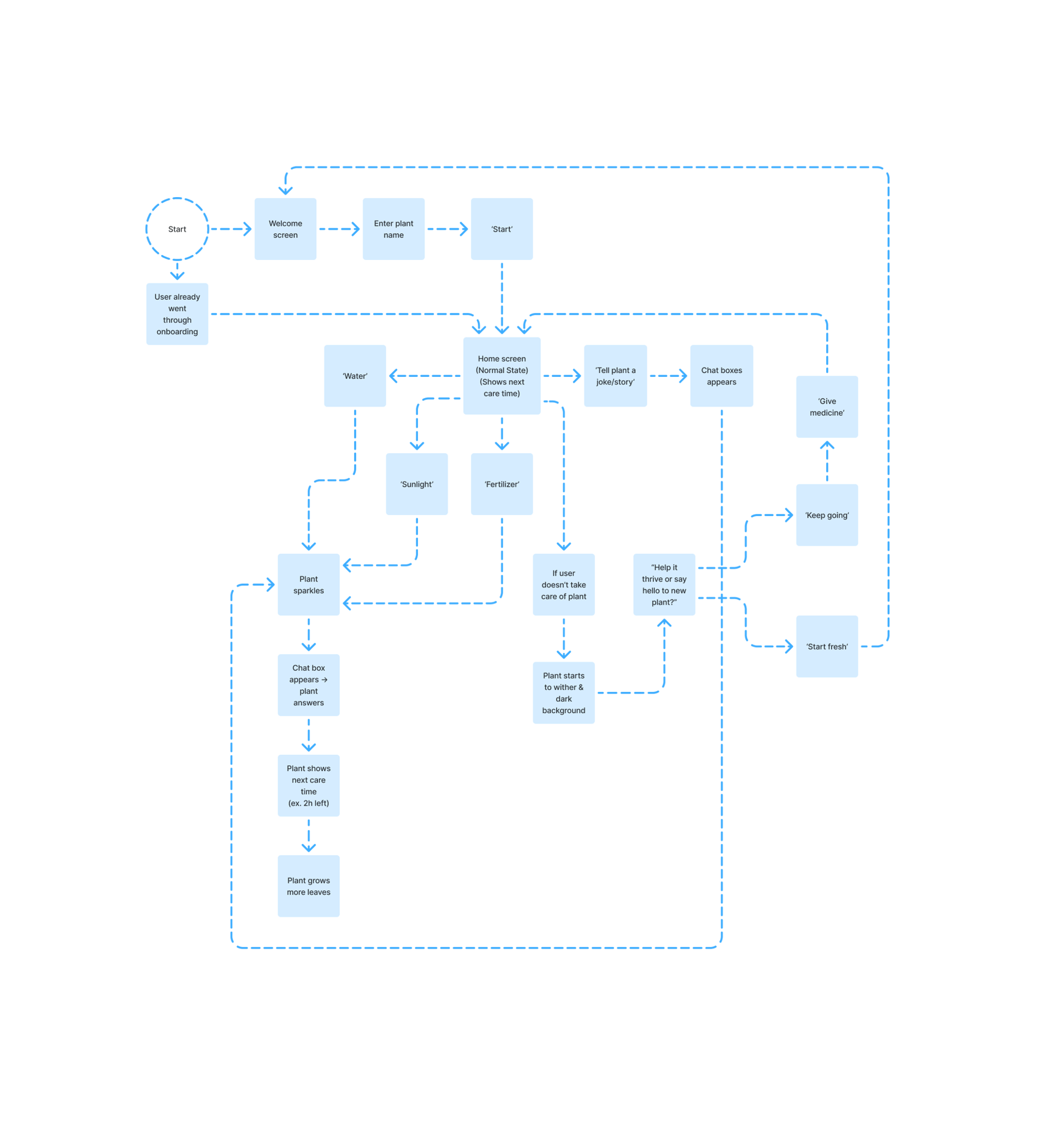 A playful, Tamagotchi-style AI plant companion that responds to your care and conversations with personality-filled messages to make daily engagement fun.