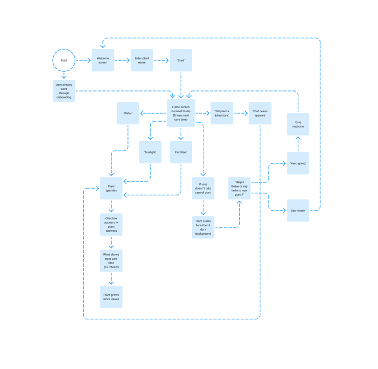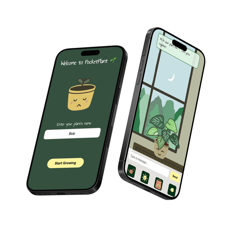This app is a playful, Tamagotchi-style plant companion. You can talk to your plant or use buttons to care for it, and it responds with thought bubbles or messages. It makes plant care fun, interactive, and encourages daily engagement through AI-driven personality.