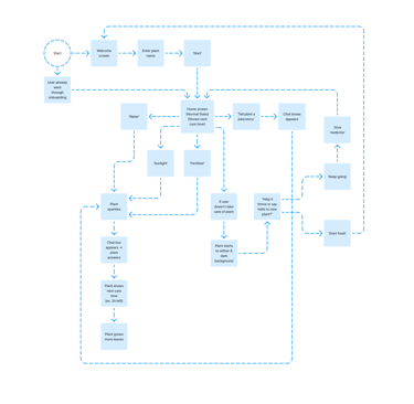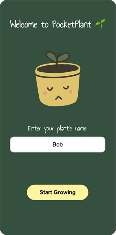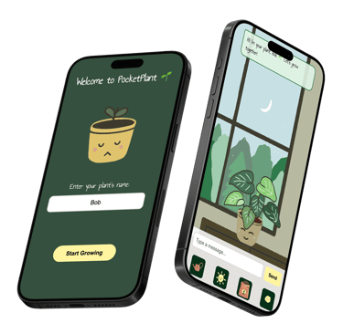 This app is a playful, Tamagotchi-style plant companion. You can talk to your plant or use buttons to care for it, and it responds with thought bubbles or messages. It makes plant care fun, interactive, and encourages daily engagement through AI-driven personality.
