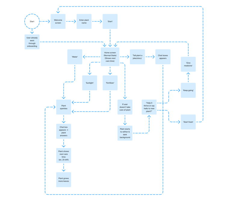 A playful, Tamagotchi-style AI plant companion that responds to your care and conversations with personality-filled messages to make daily engagement fun.