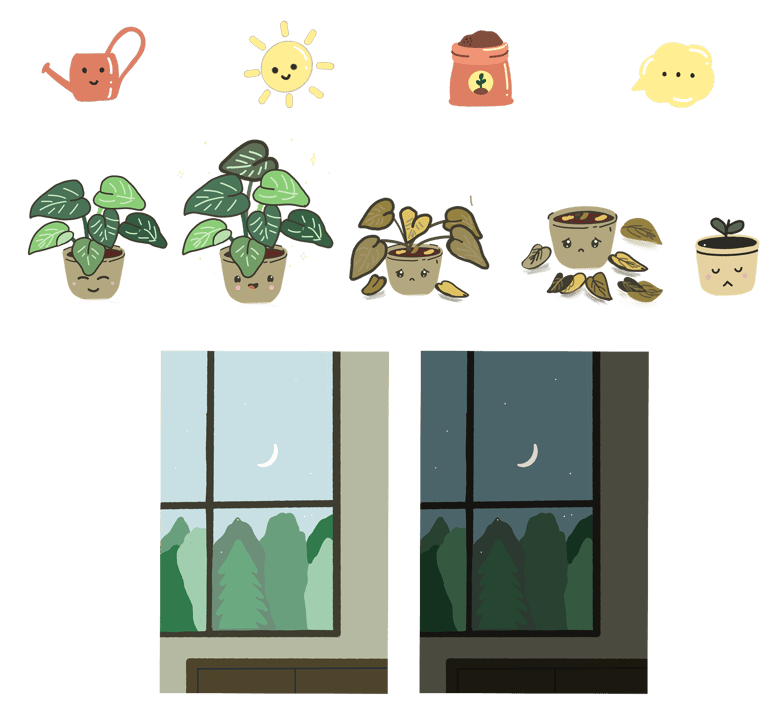 Plant Personality: Each plant has a unique personality that grows and changes based on interactions. If you don’t interact, it can get sad.